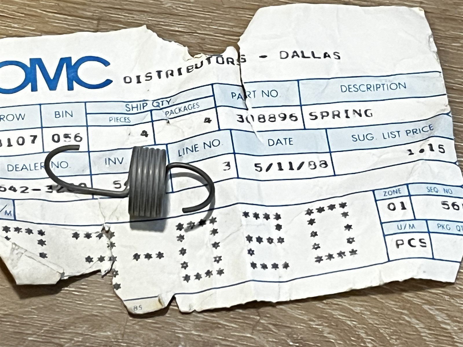 Johnson Evinrude OMC 308896 Spring