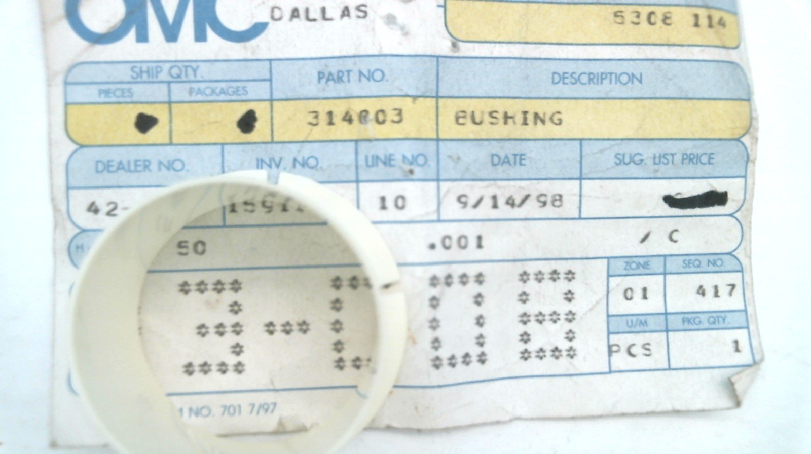 Johnson Evinrude OMC 314003 Spark Lever Bushing