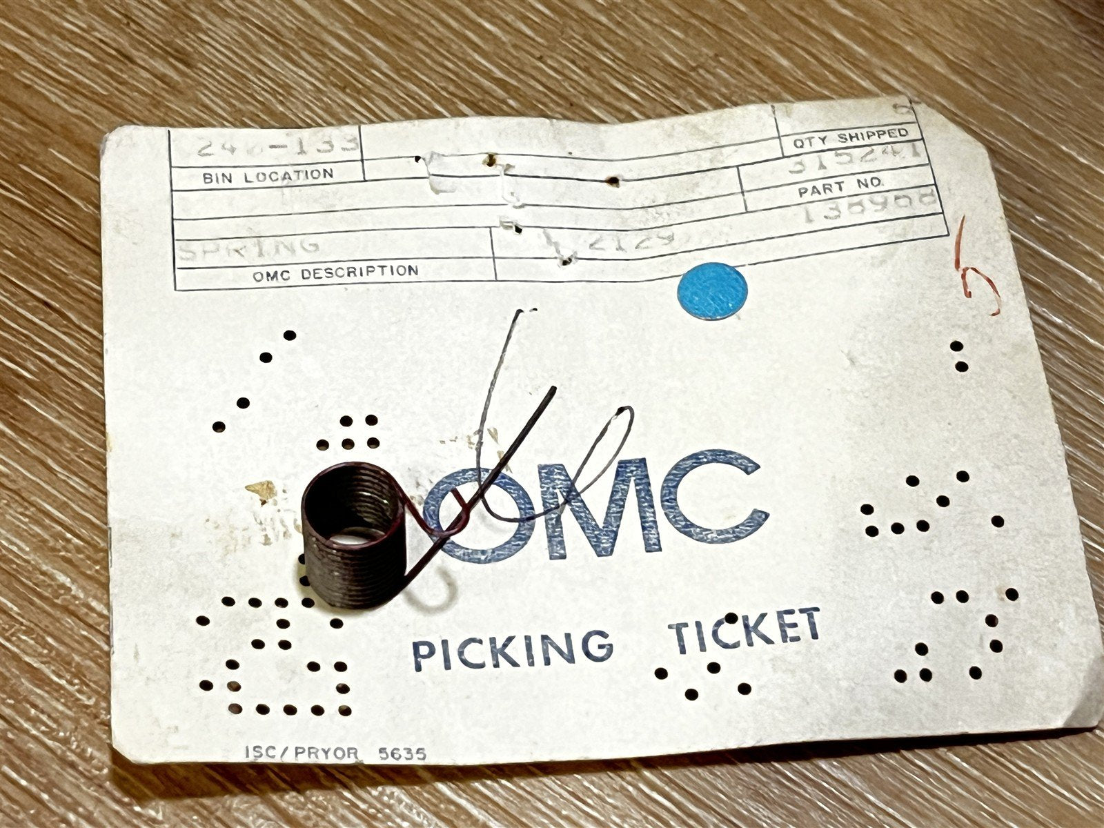 Johnson Evinrude OMC 315241 Choke Override Spring