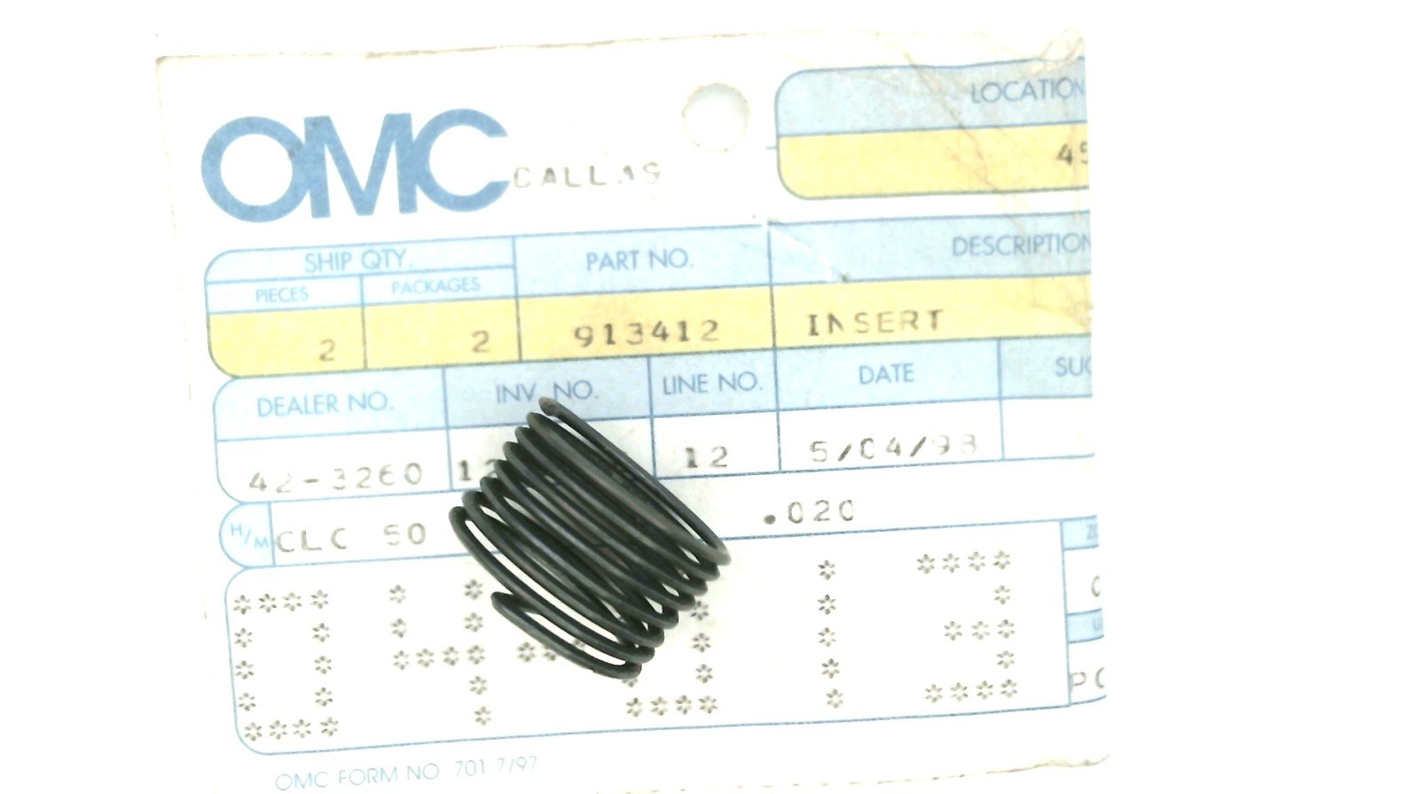 Johnson Evinrude OMC 913412 Insert