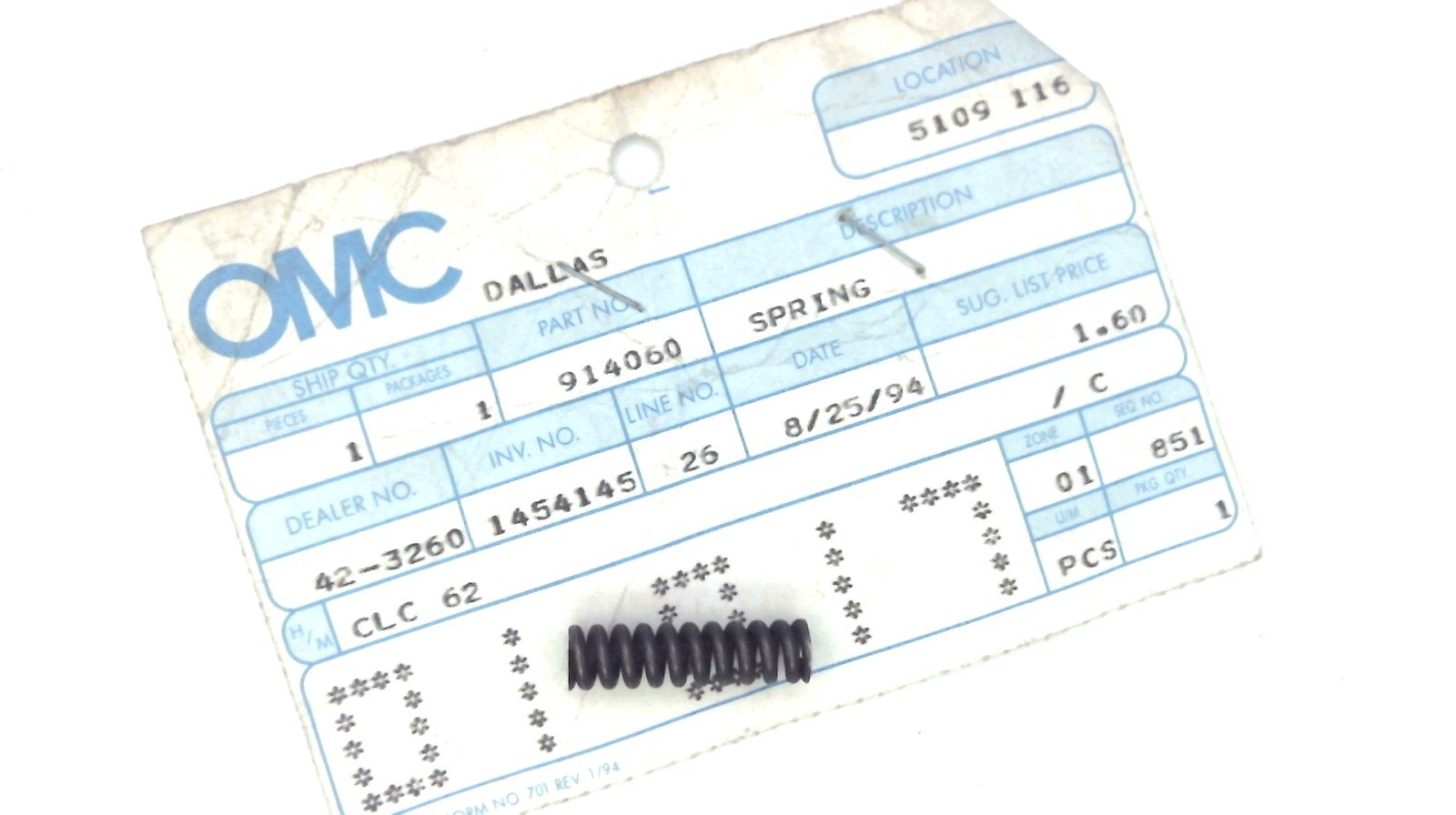 Johnson Evinrude OMC 914060 Spring
