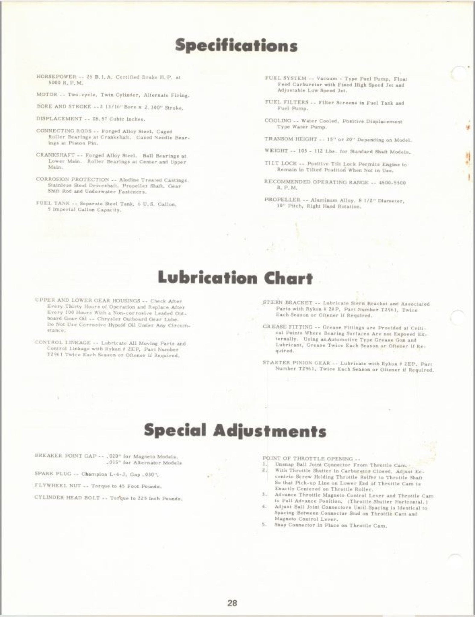 Make: Chrysler Boat & Watercraft Type: Outboard Motors Country/Region of Manufacture: United States Year(s): 1975 Models: 252HB 253HB 254HB 255HB 256HA 257HA 252BB 253BB 254BB 255BB 256BB 257BB HP: 25