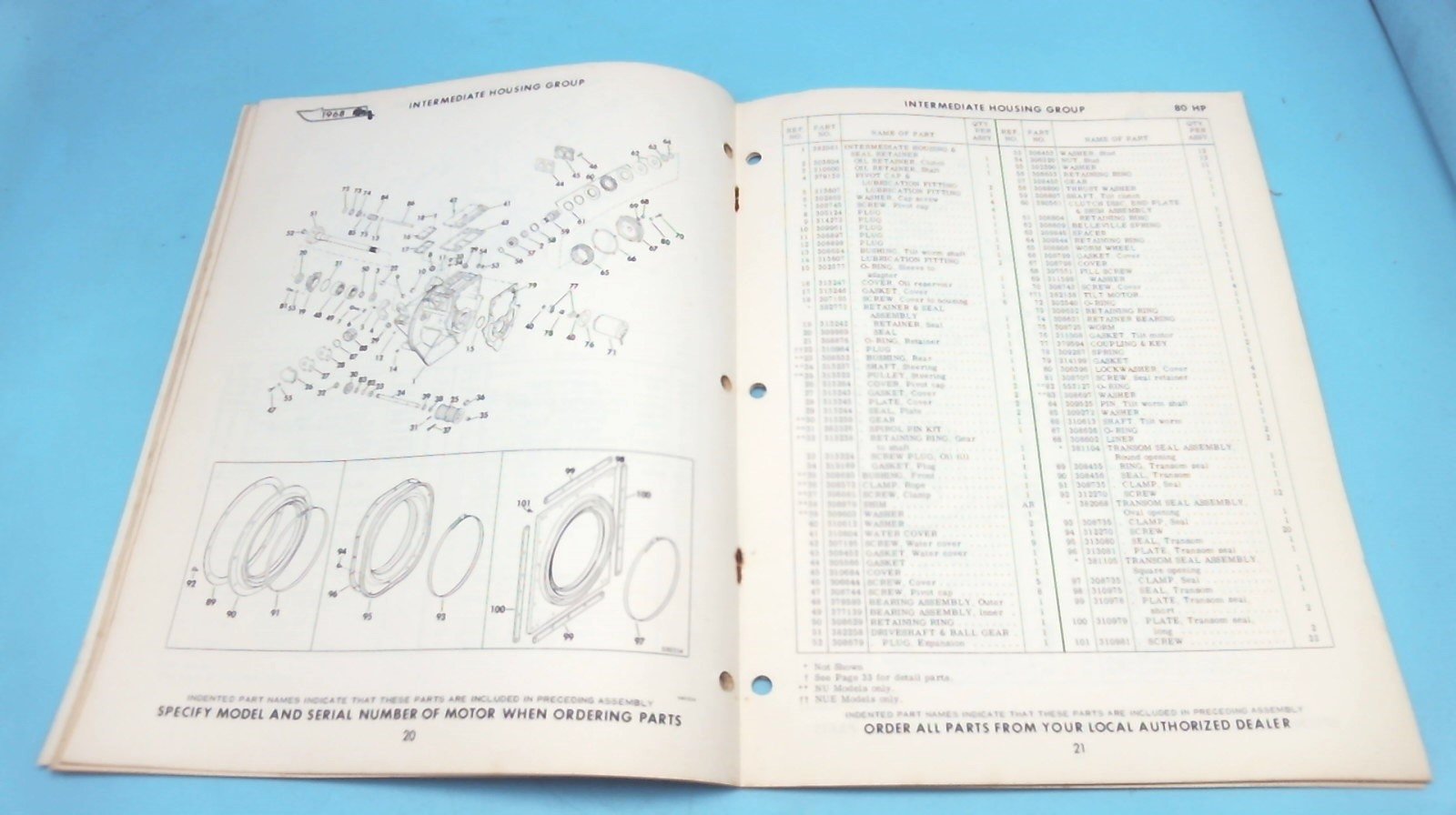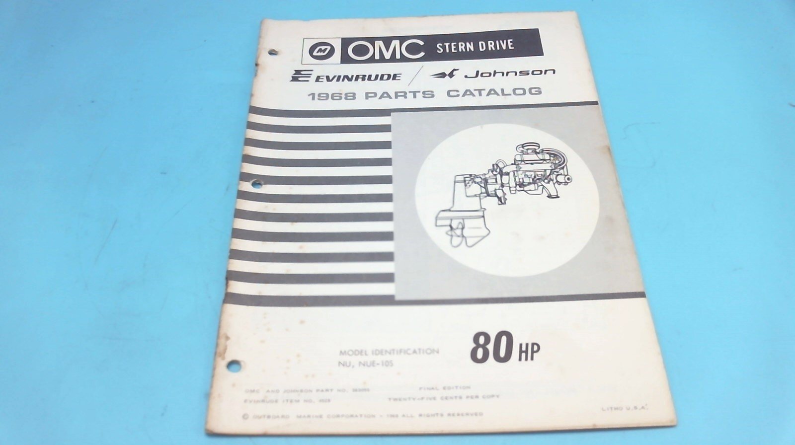 1968 OMC 80HP Stern Drive NU NUE-10S Parts Catalog - Used